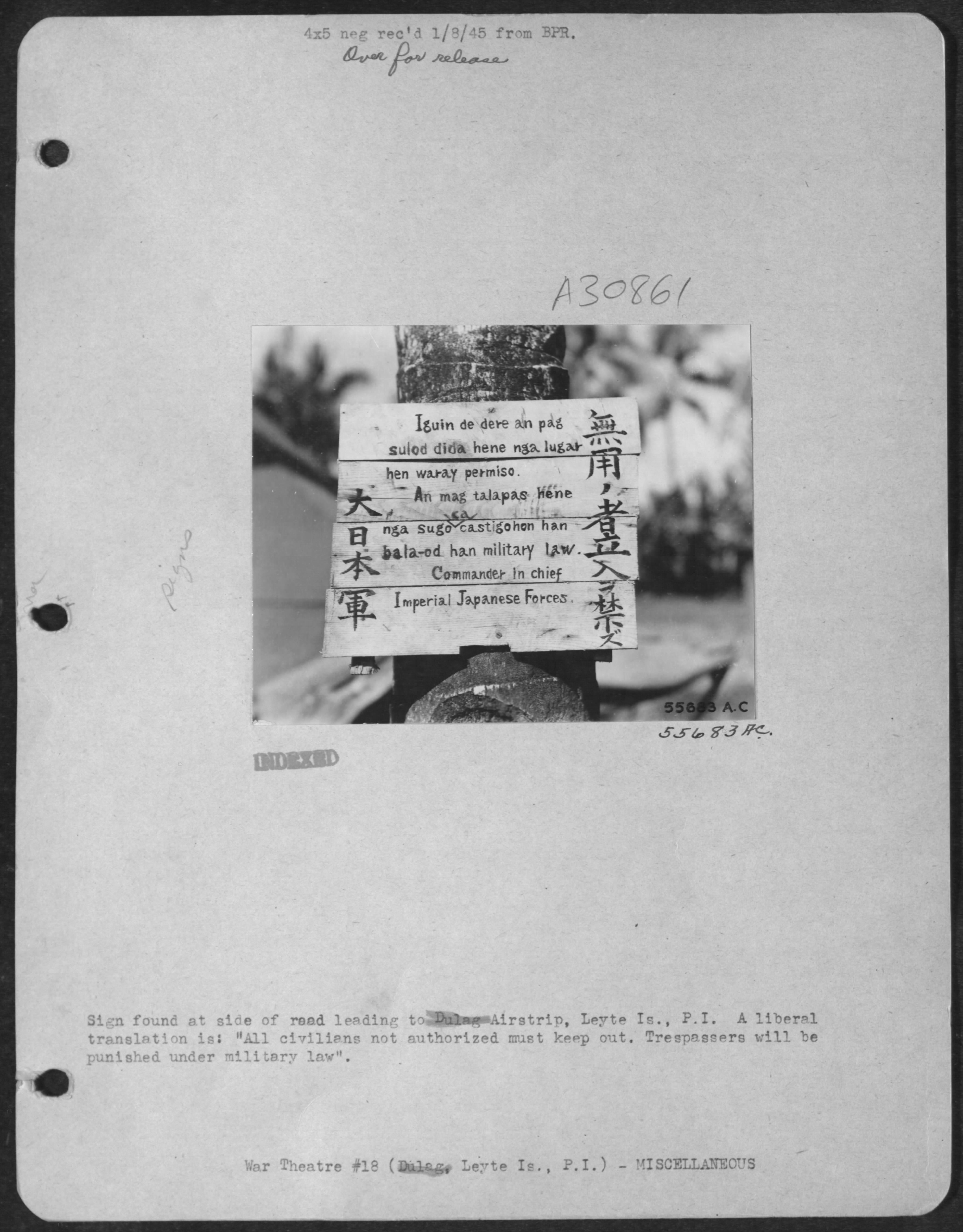 Japanese-sign-Leyte-1944 Published August 9, 2020 at 3548 × 4538 in Japanese-sign-Leyte-1944 ← Previous Next → Share this:Click to share on Facebook (Opens in new window)Click to share on Pinterest (Opens in new window)Click to share on Tumblr (Opens in new window)Click to share on Twitter (Opens in new window)