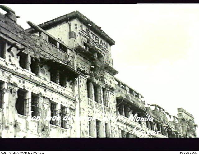 AWM-3904353 Published September 15, 2020 at 640 × 499 in AWM-3904353 ← Previous Next → MANILA, THE PHILIPPINES, 1945. DAMAGED SAN JUAN DE LETRAN COLLEGE. THIS IS IN THE AREA WHERE THE AMERICAN FORCES MADE ONE OF THE BREACHES IN THE WALLED CITY. SEE ALSO P082/68/34. (DONOR: B. COOPER; PHOTOGRAPHER: ROXAS). Share this:Click to share on Facebook (Opens in new window)Click to share on Pinterest (Opens in new window)Click to share on Tumblr (Opens in new window)Click to share on Twitter (Opens in new window)